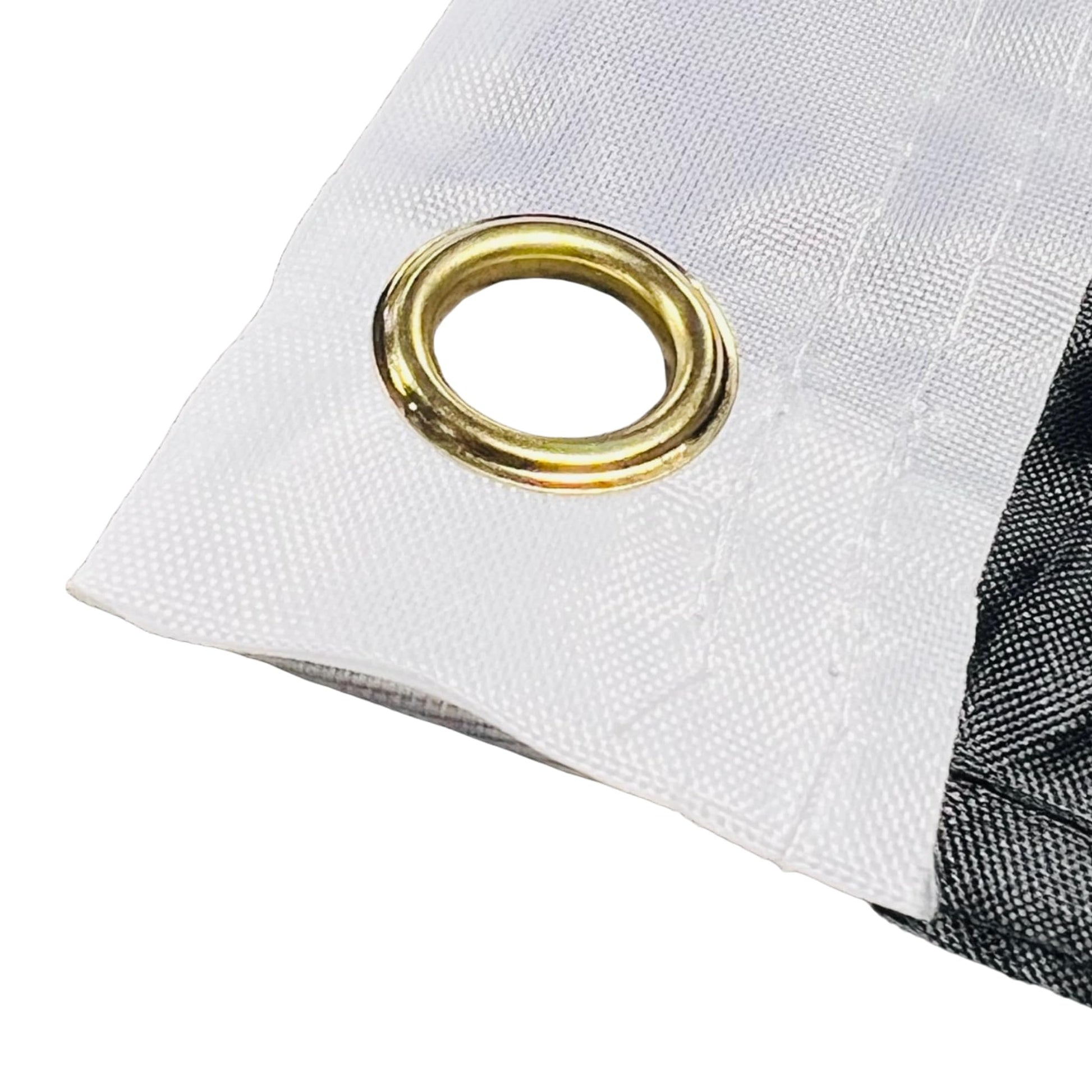 - Function – The flag features two brass grommets that are to be used to hang on a flag pole. The flag does NOT have a pole sleeve. The brass grommets can be used to attach securely to a flag pole so the flag stays tight against the pole in the wind.