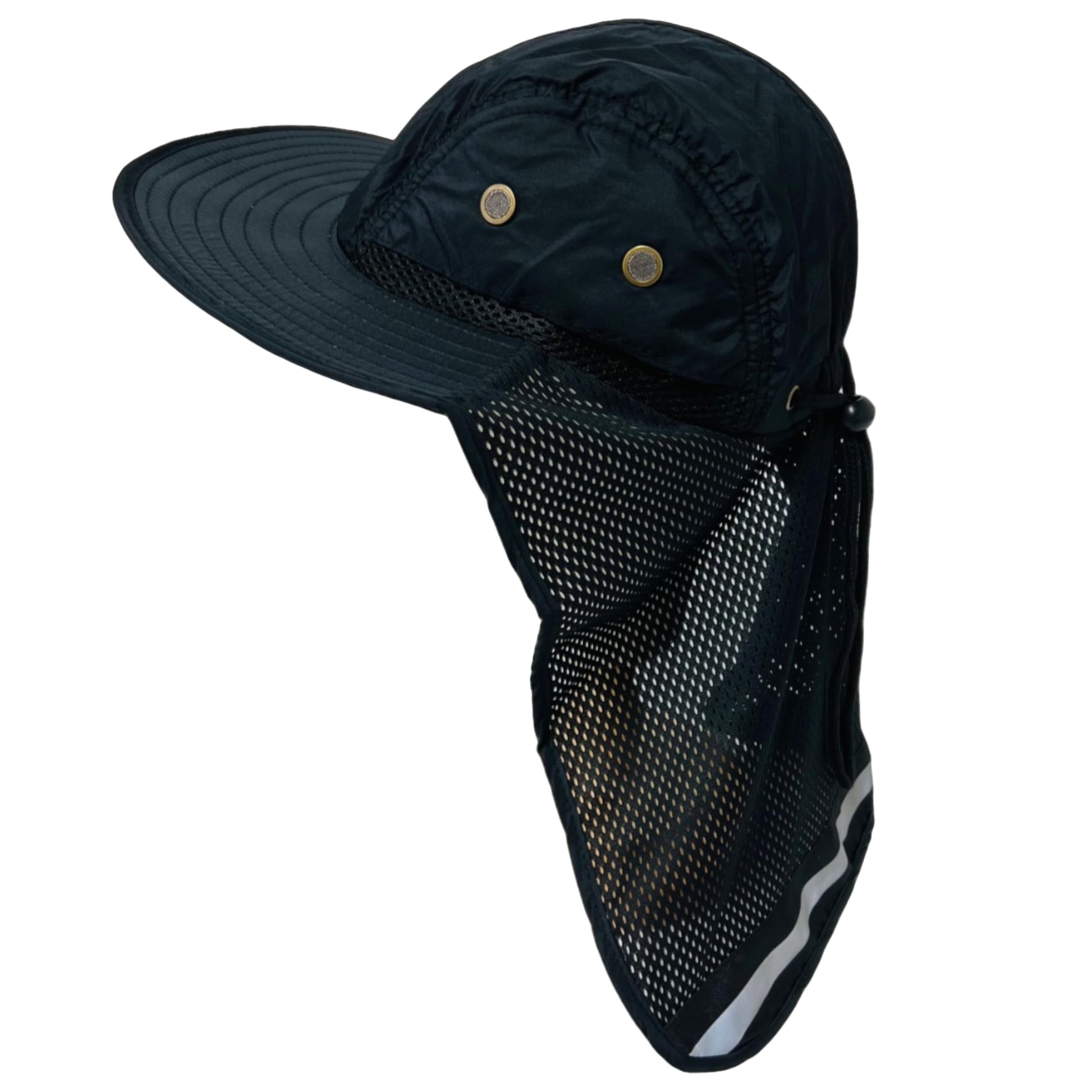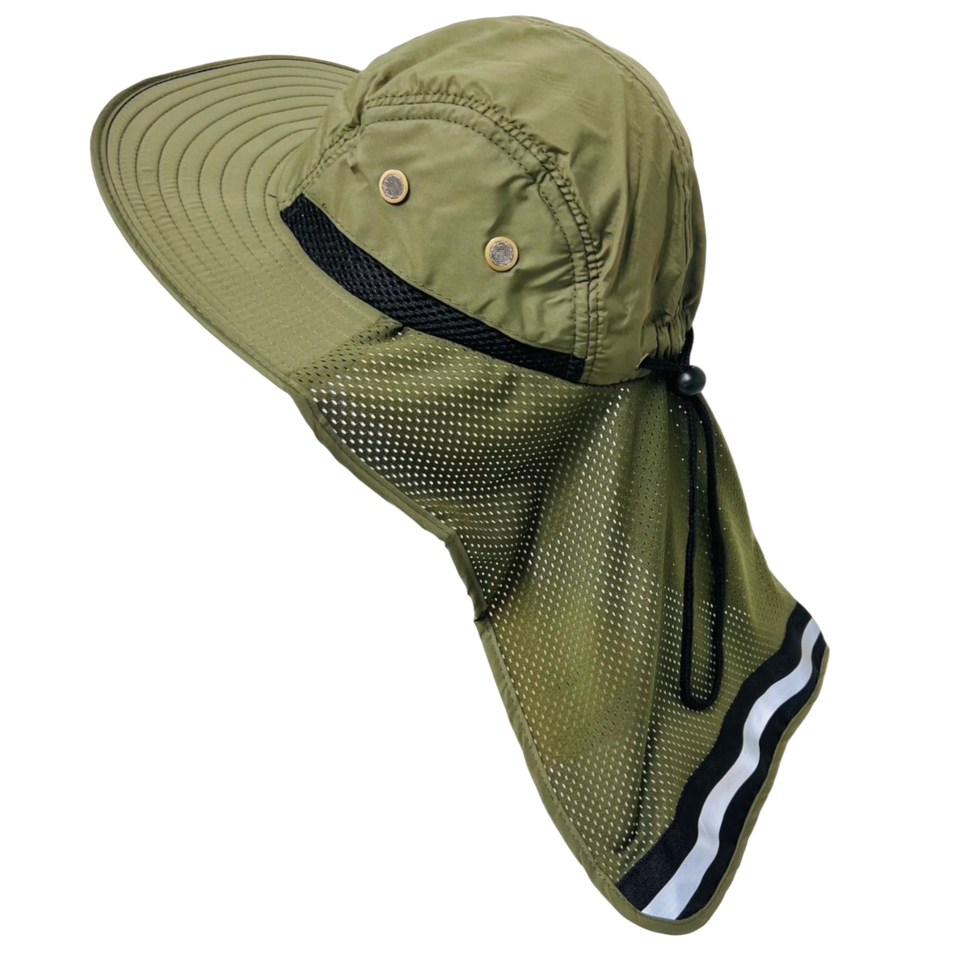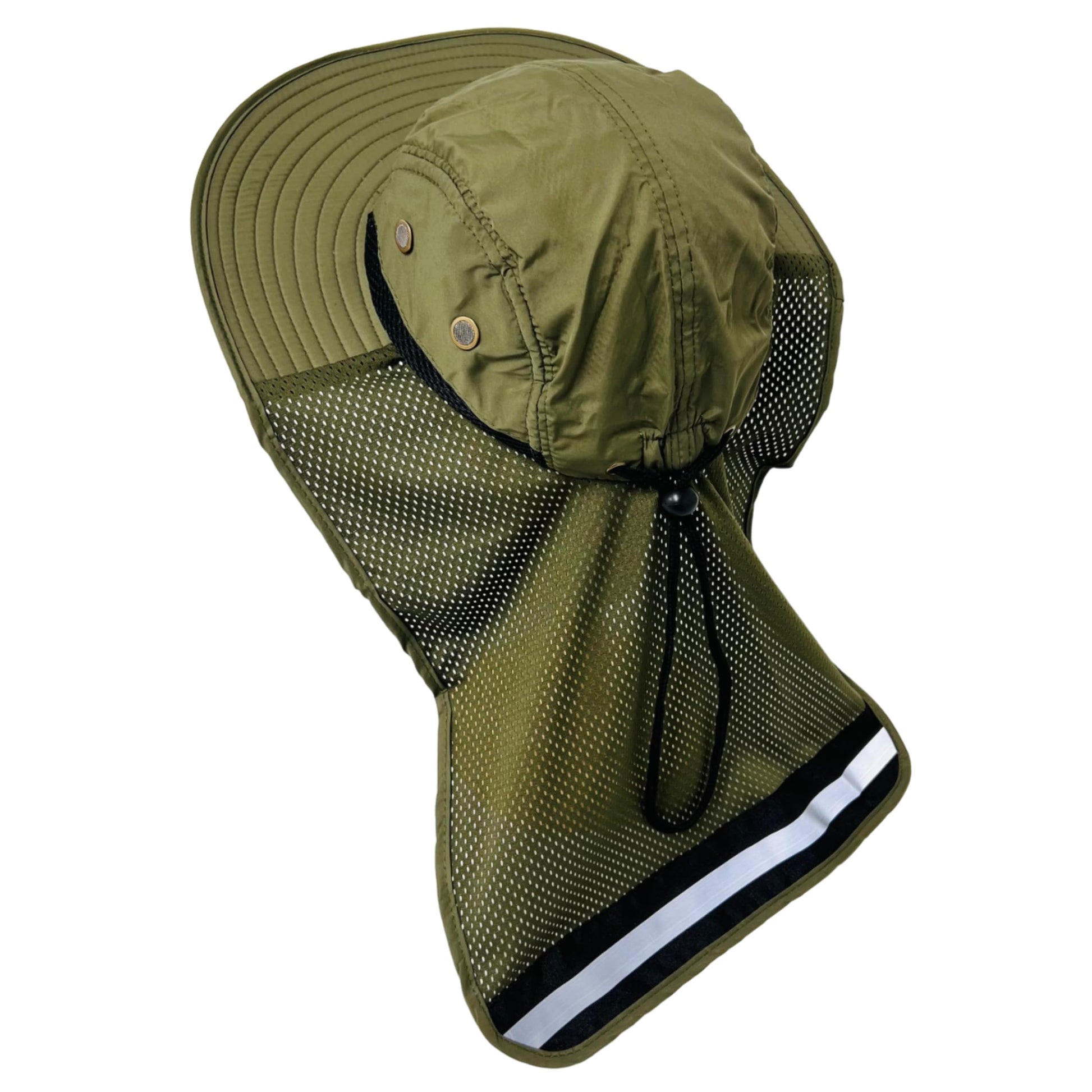 Packable and Adjustable High Visibility Mesh Boonie Sun Hat with Neck Flap and Reflective Stripe