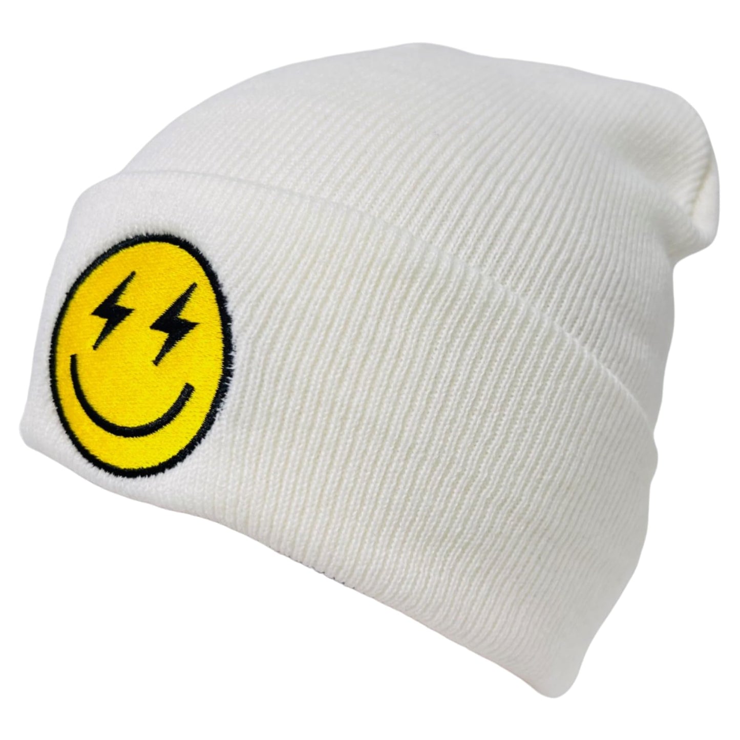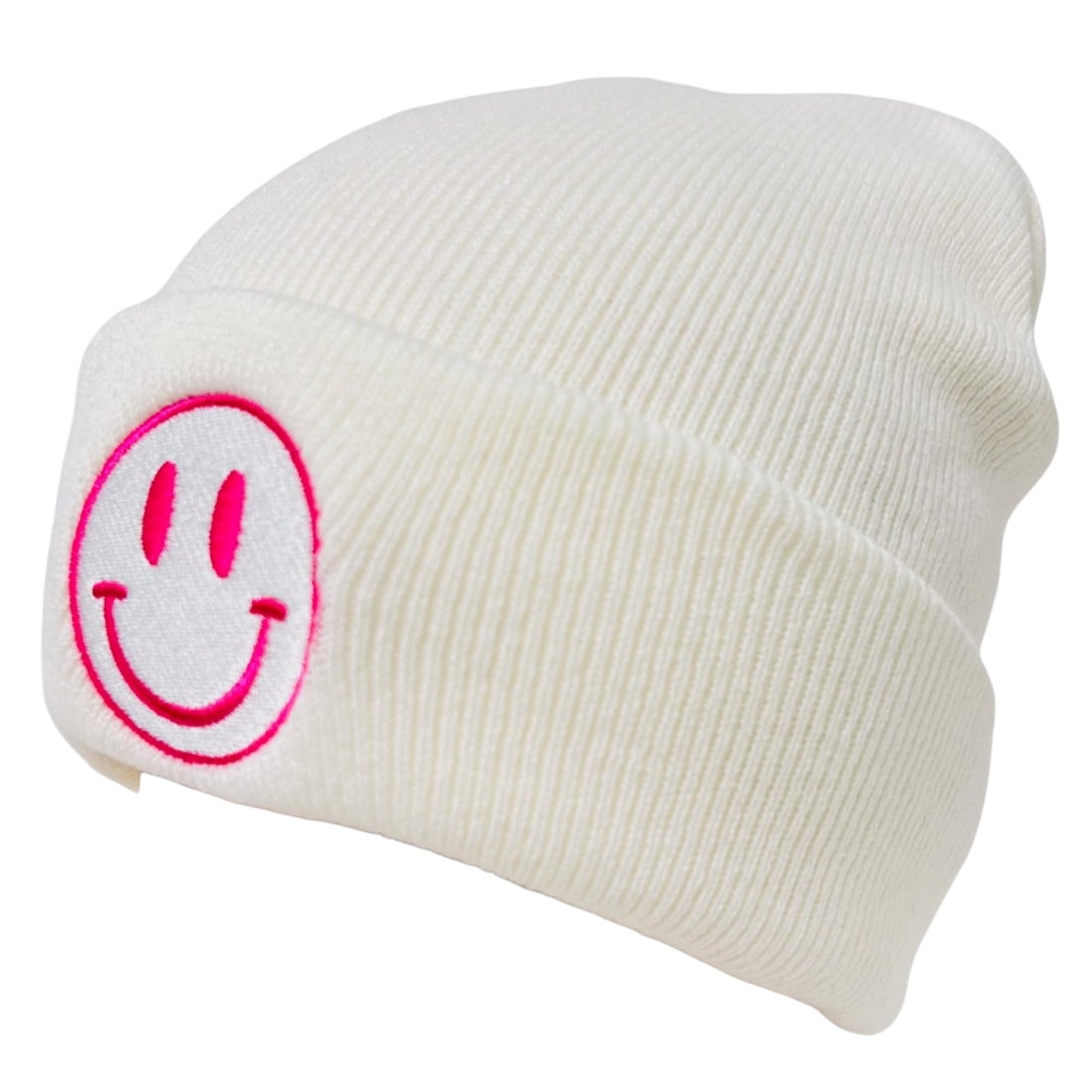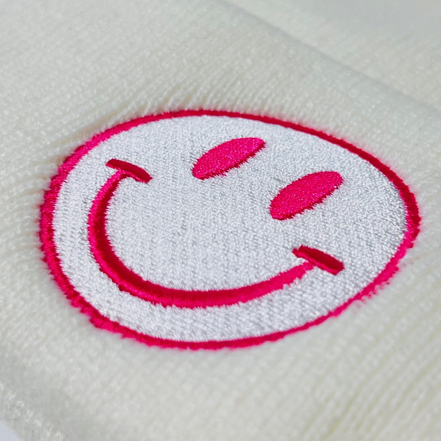 - 3D Embroidered Design - The winter knit beanie features an embroidered emoji design on the front of the beanie.