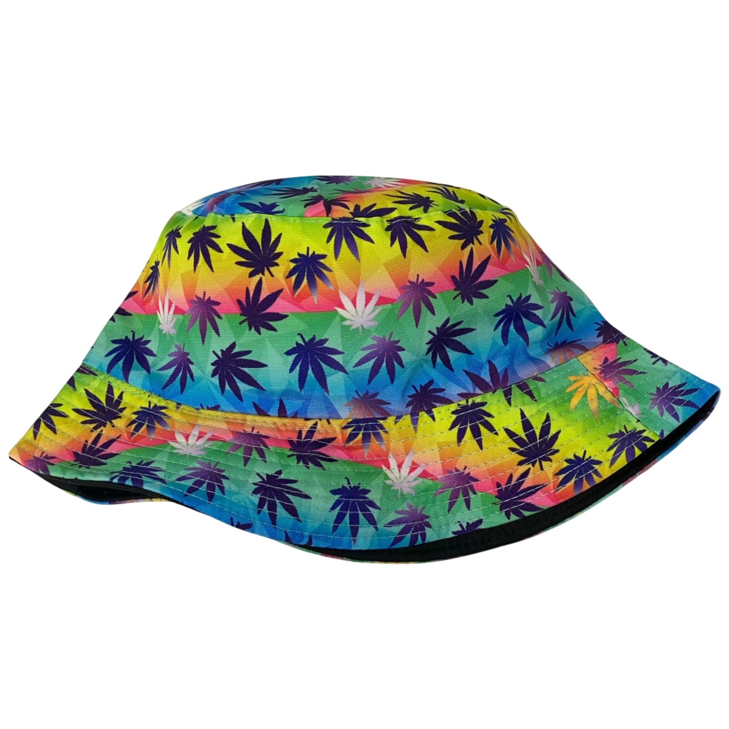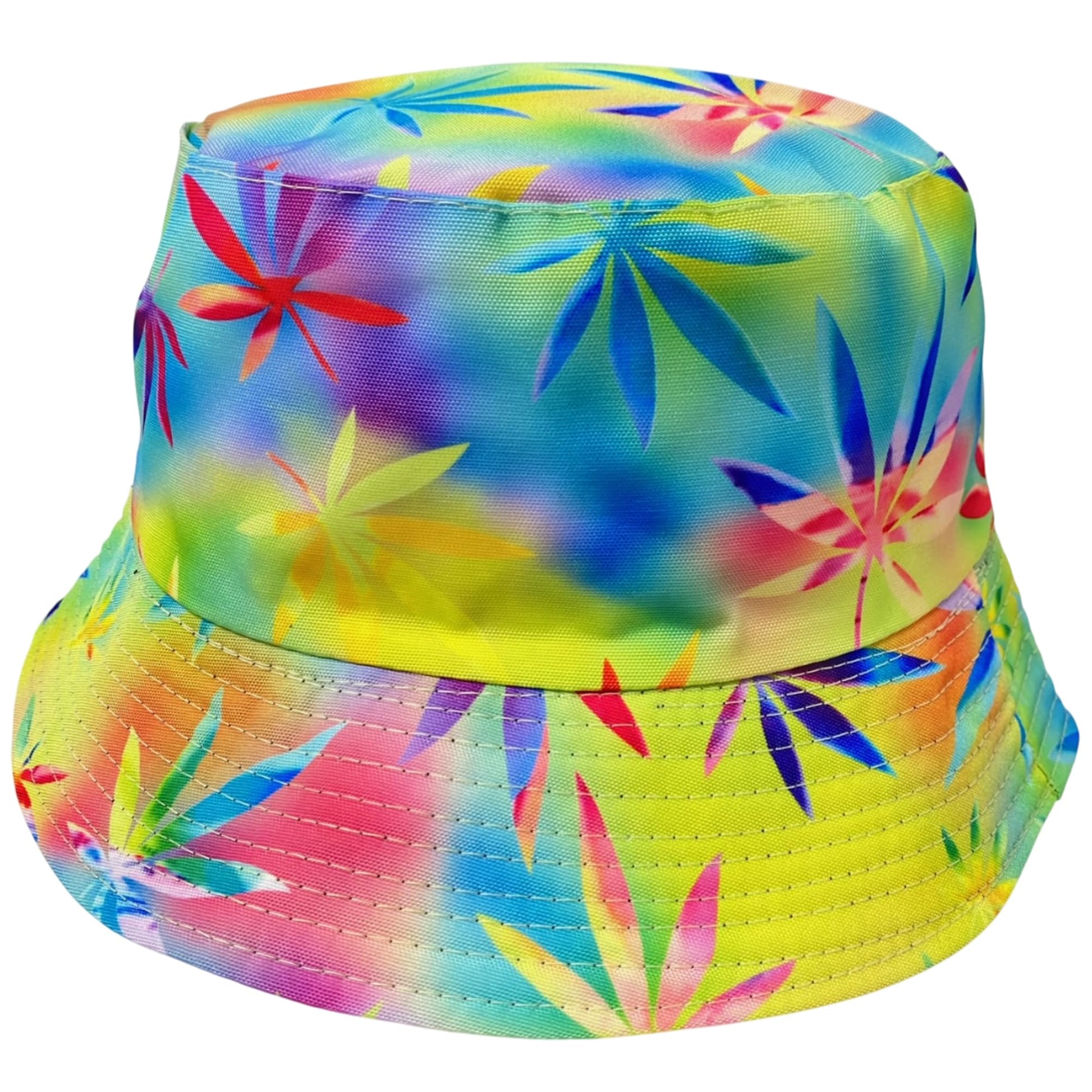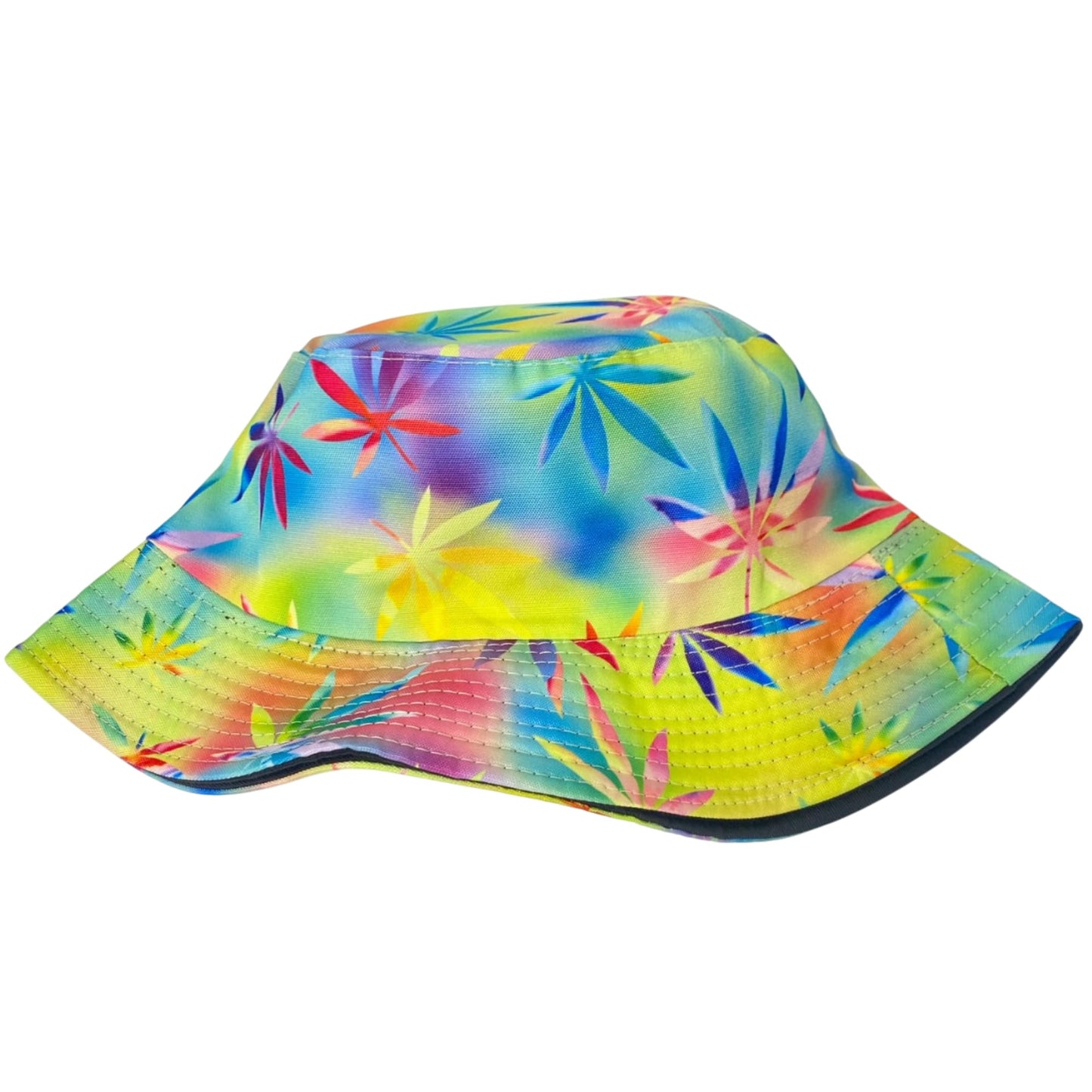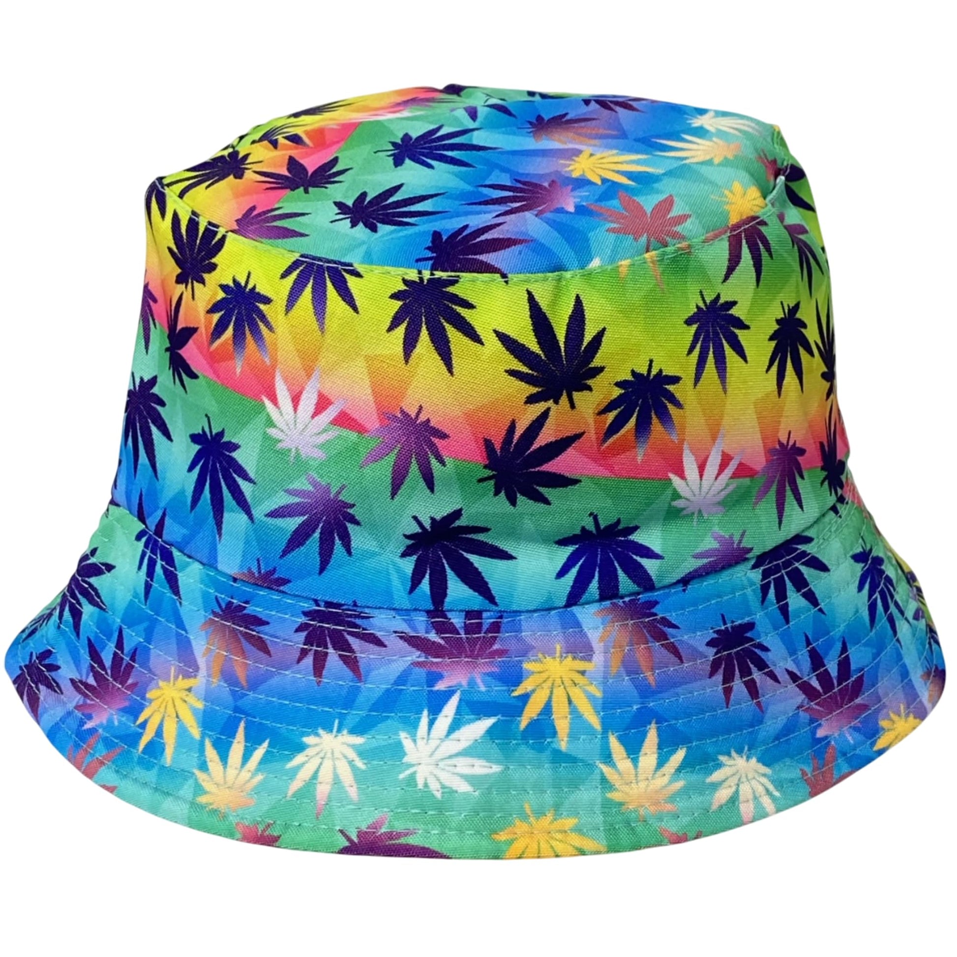 Unisex Marijuana Tie-Dye Bucket Hat Reversible Double-Side-Wear Packable for Travel, Outdoors, and Beach